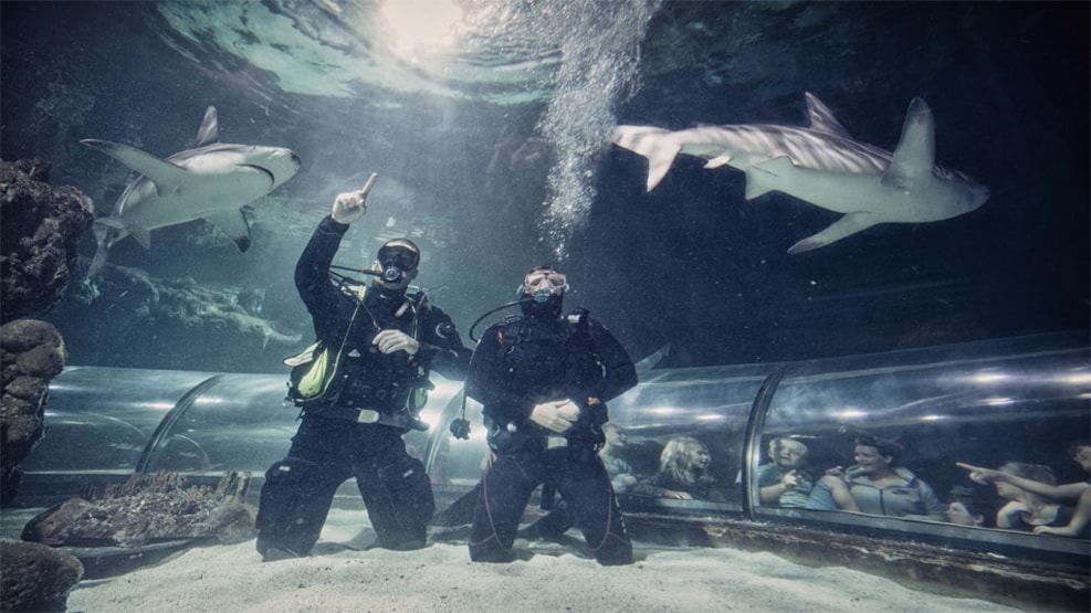 Under den store 1:1 hvalhaj i hjertet af Kattegatcentret er det muligt at dække op til ca. 200 personer! Her indtages middagen med de store tropiske hajer til den ene side og konæserokker, flagermusfisk og andre tropiske finurligheder til den anden. Derudover er der selvfølgelig en storslået udsigt over Kattegat, hvor månen spejler sig i nattens bølger.