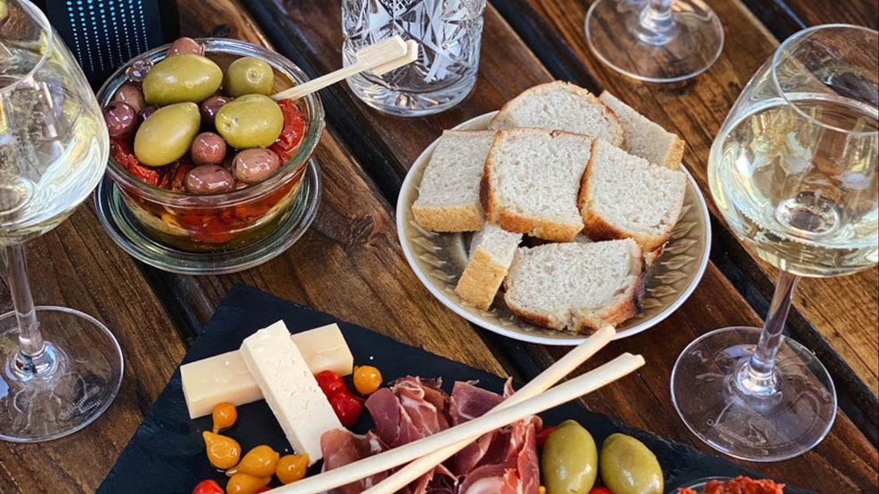 Vinbaren har tapas, der får dit mundvand til at løbe, og der er fantastiske omgivelser at nyde den i. Udendørsarealet er afslappet, og flere gang om måneden er der gratis koncerter.